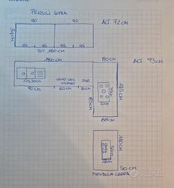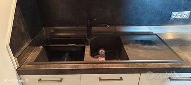 Cucina ad angolo con penisola. Inclusi Lavandino Elleci,Rubinetto,Piano cottura 5 fuochi Ariston. Misure in foto. Cassetti con chiusura ammortizzata. Smontaggio e ritiro da concordare a carico dell'acquirente. Usato condizioni eccellenti.