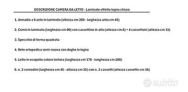 Vendesi in stock o a singoli gruppi CAMERA DA LETTO e CUCINA ANGOLARE metri 5,7 come da Schema e Descrizione allegate.
