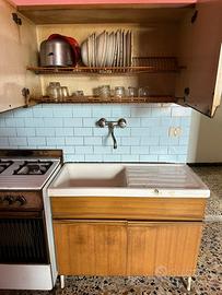 ✅ Cucina angolare completa di pensili e basi✅ Piano cottura e forno inclusi✅ Lavello con mobile✅ Struttura solida e funzionante✅ Stile vintage anni ‘70/’80