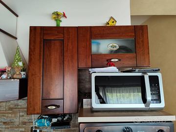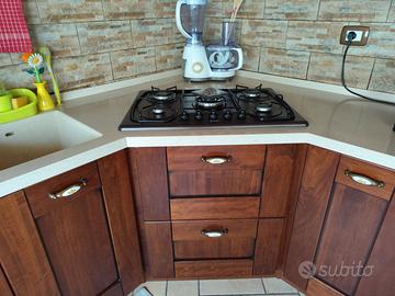 Vendo cucina angolare color marrone con inclusi cappa elettrica e fornelli marca Nardi. Ben tenuta, vendo per passaggio a cucina più moderna.