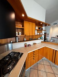 La cucina si presenta molto bene, senza difetti funzionali, funzionante in ogni parte. Top in marmo chiaro, pannelli in noce nazionale, piano cottura a 5 fuochi Franke in acciaio satinato, forno multifunzione da 90. Molto solida e ben fatta.