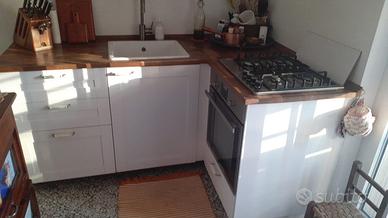 Causa trasloco vendo cucina IKEA componibile, misure riportate in foto, colore bianco e piano in rovere massiccio. Prezzo basso solo per agevolare il trasloco, compreso fuochi e forno