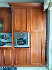 Cucina angolare in legno ciliegio completa di elettrodomestici Vendo cucina angolare in legno color ciliegio con struttura in multistrato, molto solida e di qualità, dimensioni 405 × 155 cm. La cucina è completa di elettrodomestici Franke (lavello, piano cottura e forno) e frigorifero da incasso Beko. Gli elettrodomestici sono perfettamente funzionanti e quasi come nuovi. Inclusi nella vendita: - cucina completa di pensili e basi - forno da incasso, piano cottura e lavello Franke - frigorifero da incasso Beko - mobile cassettiera da 90 cm coordinato - tavolo rettangolare La cucina è stata tenuta molto bene. Smontaggio e trasporto a carico dell’acquirente. Prezzo: €1.600 trattabili