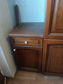 cucina angolare in legno Blum completa di; Cappa, forno ventilato, lavastoviglie, scolapiatti, frigorifero con congelatore, lavello doppio in acciaio con miscelatore, misure; 2.50 il top+(60 il forno+ 60 il frigorifero) x1.35 l'angolo,il top in marmo in 3 pezzi ........