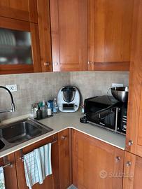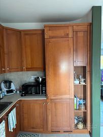 Vendesi cucina angolare in legno dalle calde tonalità naturali, caratterizzata da una struttura solida e finiture di pregio. Ideale per chi cerca un arredo duraturo e di qualità superiore rispetto ai modelli industriali moderni.