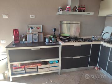 Comprensiva di forno a gas, frigo e cappa aspirante. 4 Cassettoni da 90 cm più piano di lavoro da 130 cm. Condizioni perfette.