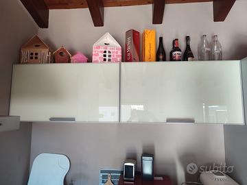 Vendo cucina nardi, angolare in vetro lucido color crema e wenge (mogano scuro), dimensioni 310 per 300 cm, altezza 215 cm.