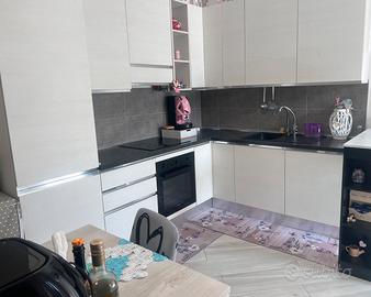 In vendita cucina angolare Mondo Convenienza, montata a giugno 2022. È dotata di elettrodomestici perfettamente funzionanti, tra cui piano cottura con quattro piastre marcato Indesit, forno elettrico con due ripiani marcato Candy, lavastoviglie ampia marcata Candy, cabina frigo marcata Candy con surgelatore nel ripiano inferiore e cappa a scomparsa. Top e lavello ( vasca singola misura 79 cm) colore antracite e ante color bianco frassino con maniglie incassate. La cucina è priva di danni, praticamente intatta.