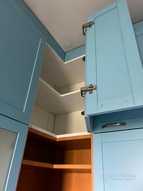 - parete intera zona cottura/lavandino: 388cm. lineari (ingombri totali moduli: 150cm a sx 3 ante +90cm zona cottura + 148cm due ante + zona angolo in faggio). Tutt’altezza 290cm