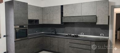 Cucina angolare, completa di cappa di aspirazione, forno e lavastoviglie Whirlpool, tutto perfettamente funzionante, cestello angolare girevole, senza frigorifero (abbiamo quello stile americano), esclusi tavolo e sedie. Dimensioni: lato lungo circa 3,50 mt, lato corto circa 2,10 mt