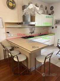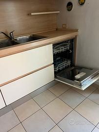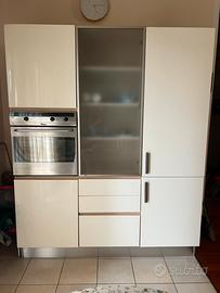 Vendo cucina completa, dallo stile moderno e lineare, composta da moduli bianchi lucidi con dettagli in vero legno chiaro.