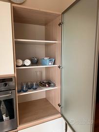 Modulo CENTRALE: dispensa con anta scorrevole satinata: ideale per vano elettrodomestici o spazio per piccoli strumenti da cucina. Internamente è dotata di ripiani larghi e molto capienti.