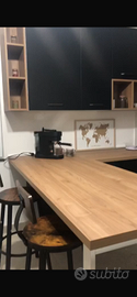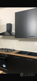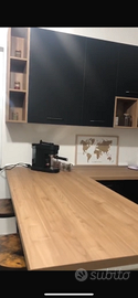 cucina in legno colore nero e rovere chiaro di 6 m angolare con penisola corredato di diversi mobili pensili contattare in privato per video integrale