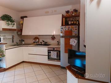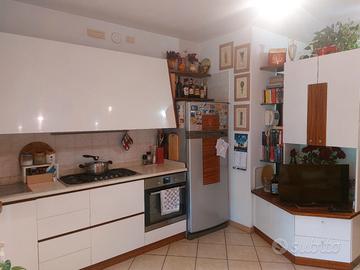 Cucina angolare di qualita con mobile TV Le dimensioni 330×180 compreso di lavastoviglie Rex frigorifero Rex lavello e piano cottura Franke piano di lavoro in marmo volendo anche il forno electrolux.