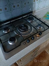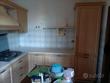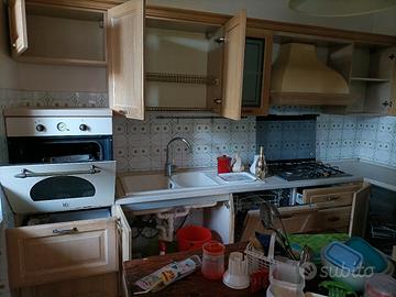 Cucina angolare completa di: ante ad angolo, frigo, forno, congelatore e lavastoviglie funzionanti. Cappa e piano di cottura mal concianti ma riparabili.