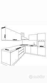 Il piano di lavoro presenta un difetto estetico localizzato dovuto a una bruciatura, che non compromette l’utilizzo generale della cucina. Normali segni del tempo coerenti con l’età.