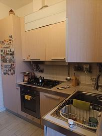 Cucina angolare 130x290 con frigo e piano cottura perfettamente funzionanti. Non sono inclusi lavastoviglie e forno.