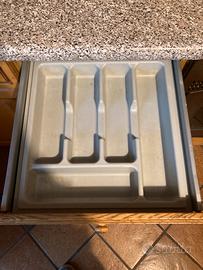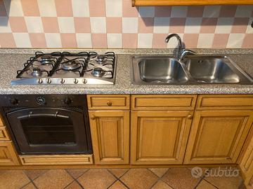 Vendo cucina angolare a doppio angolo in legno massello di rovere, molto solida e di ottima qualità. Composizione di circa 4 metri lineari + angoli, completa e pronta all’uso: ante in rovere massello pensili con ante in vetro cappa aspirante forno piano cottura lavello inox doppia vasca Cucina capiente, funzionale e dal design classico, adatta a diversi ambienti. Condizioni buone Zona Torino e provincia Smontaggio e trasporto a carico dell’acquirente Parole chiave: cucina usata torino, cucina angolare, cucina completa, cucina rovere massello, cucina legno, cucina componibile, cucina con elettrodomestici, lavello doppia vasca inox