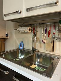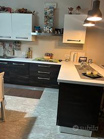 Cucina angolare bianca e venghe dotata di lavello doppio, lavastoviglie whirlpool, cappa, tavolo in vetro (estensibile) con 4 sedie in ecopelle. Possibilità di servizio di montaggio e trasporto da calcolare a parte.