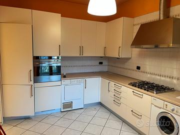 Cucina angolare completa di pensili ma senza elettrodomestici di marca Acheo. Colore bianco magnolia