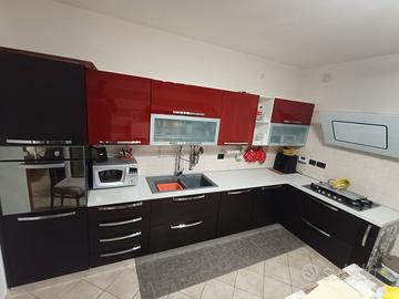 Vendo cucina angolare marca veneta cucine completa di elettrodomestici quali Forno Hotpoint Ariston, cucina cinque fuochi da 75 cm marca Hotpoint Ariston in vetro scuro ,lavastoviglie Candy , Cappa marca Elica , il tutto funzionante. Dimensioni 3,90 x 1,20. Tavolo e sedie esluse
