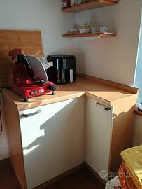 Vendo cucina angolare completa di lavandino in acciaio, cappa, piano cottura in acciaio e forno, come da foto (esclusa lavastoviglie). Normali segni su usura. Misure piano basso lunghezza 240 cm, h 90 cm, piano alto lunghezza 206 cm, h 117 cm. Ulteriore mobiletto angolare. Smontaggio e trasporta a carico dell' acquirente. Prezzo trattabile. Per ulteriori informazioni o per visionare la cucina, chiedo di essere contattata ore pomeridiane 3284389465.