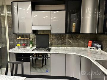Del tongo, cucina moderna anni 90. . Cucina d’esposizione, nuova. Top marmo bianco carrara. La cucina ha anche tavolo in bianco carrara e 4 sedie.