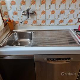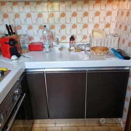 Vendesi cucina angolare in buono stato composta da lavello in acciaio e da n.3 fuochi alimentati a gas + 1 piastra elettrica, top bianco e relativo mobilio composto da: