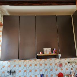 n.3 doppie anta + 2 ante singole ad angolo (misure singola anta: 43 cm lunghezza x 122 altezza) + parte centrale a copertura tubo cappa aspirante (da sostituire)