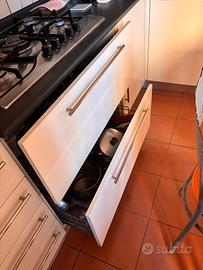 Vendo ampia cucina ad angolo con doppio lavello con sgocciolatoio con forno piano cottura 5 fuochi ariston lavastoviglie whirlpool, frigo congelatore elevtrolux. Due vetrine due cassettoni 4 cassetti corredata da tavolo allungabile per 4 persone con quattro sedie ci si mangia anche in sei possibile visionare, no perditempo o affaristi previso che du Ns richiesta la cassa della cucina è stata fatta in legno e non truciolato prezzo trattabile per realizzo