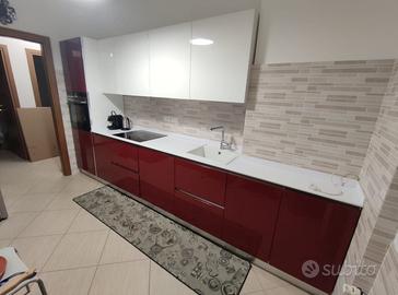 Vendo cucina completa modello Ar-Tre Iride laccato con gola, design moderno senza maniglie, nei colori bordeaux e bianco, del 2016, utilizzata in modo discreto da una sola persona.