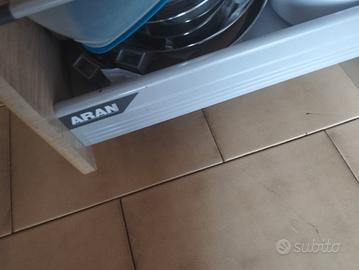 Causa trasloco vendo cucina marca ARAN dotata di piano cottura (un fuoco non funzionante) lavandino in ottimo stato, lavastoviglie (usata pochissimo) misure L 260 cm H 100 cm, colonna frigo