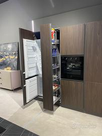 Presente colonna dispensa estraibile e accessori metallici Moving che migliorano organizzazione e accessibilità degli spazi interni.