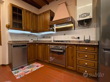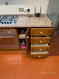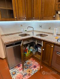 Vendo cucina per rinnovo arredamento. Nella cucina é compreso lavastoviglie 6 coperti, forno, piano cottura tutto funzionante. Top in granito con 2 vasche in granito . Cappa aspirante nuova 1 mese di vita Dimensioni: 2,50 metri lineare + 1 metro angolo non a 90* Il frigorifero non è in vendita Prezzo 1500€ trattabili