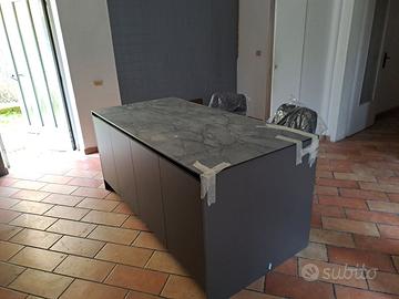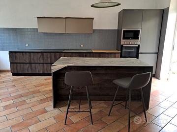 Cucina modello Kalí di Arredo3, manifattura veneta, nuova. Acquistata nel 2024 e montata in una casa mai abitata, non è stata nemmeno collegata agli impianti. Cucina in linea, lunghezza 5 metri più isola separata con sgabelli. Finiture di pregio, ante e struttura in PET lavagna (grigio scuro) e legno scuro (quercia) con piano in materiale contemporaneo, completa di elettrodomestici Beko integrati: forno tradizionale, forno a microonde, piastra a induzione, lavastoviglie e cappa con filtro di ultima generazione (non servono tubazioni verso l'esterno). Vendo per inutilizzo. Valore di mercato quasi 15.000 euro, Smontaggio e trasporto a carico dell'acquirente. No perditempo.