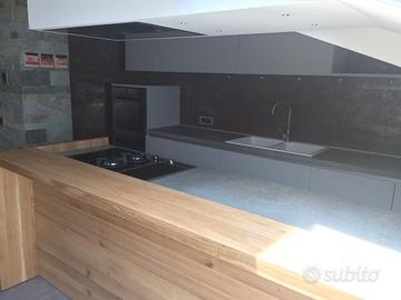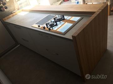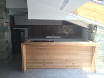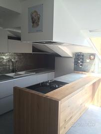 LA CUCINA è COMPOSTA DA UNA PENSIOLA DI M2,40 OVE SONO INSERITI I FUOCHI (IL FORO è DA 90) ED UN FRIGO A 2 CASSETTONI krdd-9011 kitchenaid CIRCONDATO DA UN PIANO IN LEGNO DI ROVERE SBIANCATO