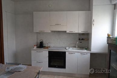 cucina artigianale usata circa 6 mesi, frigorifero/ freezer, forno, piano cottura, cappa aspirante, lavandino con rubinetto. dimensioni: 263+70cm di frigorifero