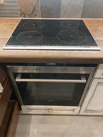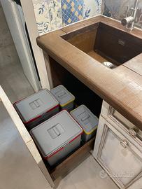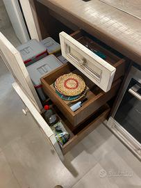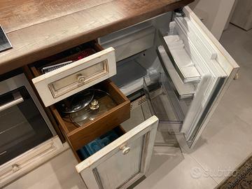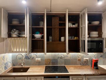 Cucina artigianale in legno massello come da foto, completa di elettrodomestici Siemens: - cappa aspirante incasso - frigo sottopiano - forno elettrico ventilato - microonde - piano induzione 4 piastre Ante in legno massello e cassetti con freni di chiusura. Disponibili per visione. Ritiro in loco.