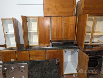 Cucina artigianale in legno massello con annessi frigorifero “castor” , forno elettrico “Bompani”, piano cottura a gas 4 fuochi “Glem Gas”, cappa elettrica “Glem Gas” . Completa di top in marmo , di lavello in acciaio doppia vasca con scolapiatti e rubinetteria e piattaia. Inoltre lampadario in ottone e vetro a tre luci. Larghezza totale dei vari componenti assemblabili 400 cm , altezza fino a 217 cm , profondità 60 cm. Il tutto va assemblato in relazione alle proprie necessità. Privato Vende Euo300. Volendo si possono comprare anche i singoli elettrodomestici il cui prezzo va concordato.
