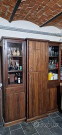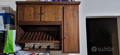 La cucina realizzata interamente in legno massello di noce composta da: - piano di lavoro/piano cottura in marmo di carrara bianco (215x 64) con incasso per lavastoviglie, vetrina/credenza (Lung. 83 – h 230) con incassati frigorifero funzionante e congelatore non utilizzato al momento – piattaia ( lung. 110 – largh. 35- H 90) e cappa a camino (90x50) – tavolo quadrato 1 mt x 1 mt. chiusura a libro allungabile a 2 mt - n. 6 sedie – n. 1 madia (110x60).