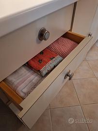 Caratteristiche: Numerosi vani contenitori, pensili spaziosi e cassettiera robusta. Interni dei cassetti in legno naturale.