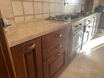 Cucina artignale in legno e marmo 3,60m in ottime condizioni, fatta eccezione per qualche imperfezione come da foto, ritoccabbili una volta montata. Si vende a parte fuochi e forno con l'aggiunta di €200, marca ariston. La cucina è disponibile per lo smontaggio e il ritiro (tutto a vostro carico) fino al 5 gennaio, in zona dragoncello (ostia). Prezzo 500€+ eventuali 200€
