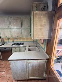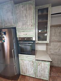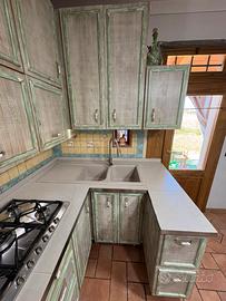 vendo cucina artigianale per cambio stile di arredamento in legno massello con le rifiniture in verde pastello.