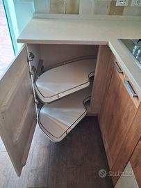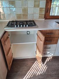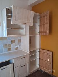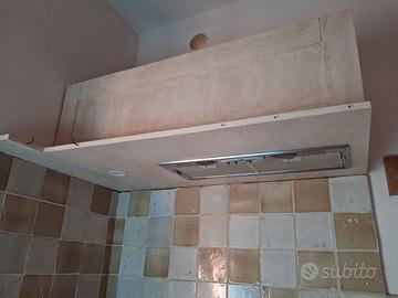 Cucina Artigianale in multistrato laminato e castagno. prof. 63 altezza 91 larghezza 385+60 altezza colonna 270 fornita di cappa, fornelli, lavabo e miscelatore No frigo, no forno.