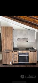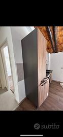Vendo struttura cucina senza elettrodomestici con colonna frigo Effetto legno noce e top nero laminato - misure come da foto Asta del mobile Nuova, mai utilizzata In parte già smontata in singoli moduli
