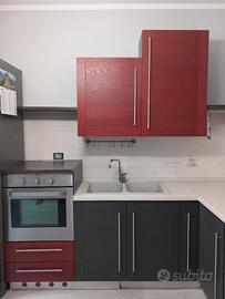 Cucina solida e funzionale 220cax240cm grigio antracite e bordeaux (no cappa e frigo).