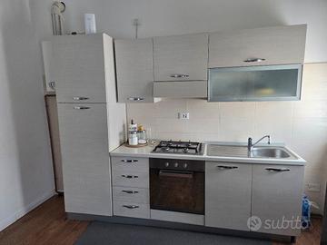 cucina come da foto lineare da 255mm completa di forno e frigor con fuochi tutto perfettamente funzionante. tavolo da 160mm con 6 sedie nuove smontaggio e trasporto a carico del cliente. ritirabile dal 21 maggio