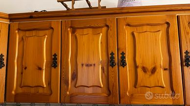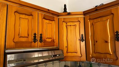 Questa è una cucina usata , ma solida, ante in legno di pino e ripiani in massicciato.