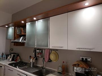 vendo cucina ottimo stato lunghezza pezzi 1.68 + 1.05 + colonna forno 0.60 . Forno Candy e lavastoviglie non incassata Rex Techna green con solo sportello ammaccato, entrambi perfettamente funzionanti . 4 sgabelli + penisola 1.55 x 60 . Lavastoviglie, sgabelli e penisola vendibili anche separatamente. 500 euro trattabili a seconda anche dei pezzi di interesse. Ritiro Bari zona policlinico a carico acquirente (no spedizione) disponibile metà novembre