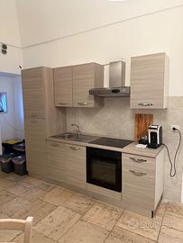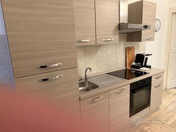 **Cucina in vendita**: cucina di circa 2 metri, completa di piastra a induzione e forno, con frigo nuovo. Colore marrone, in ottime condizioni e pronta per essere utilizzata.